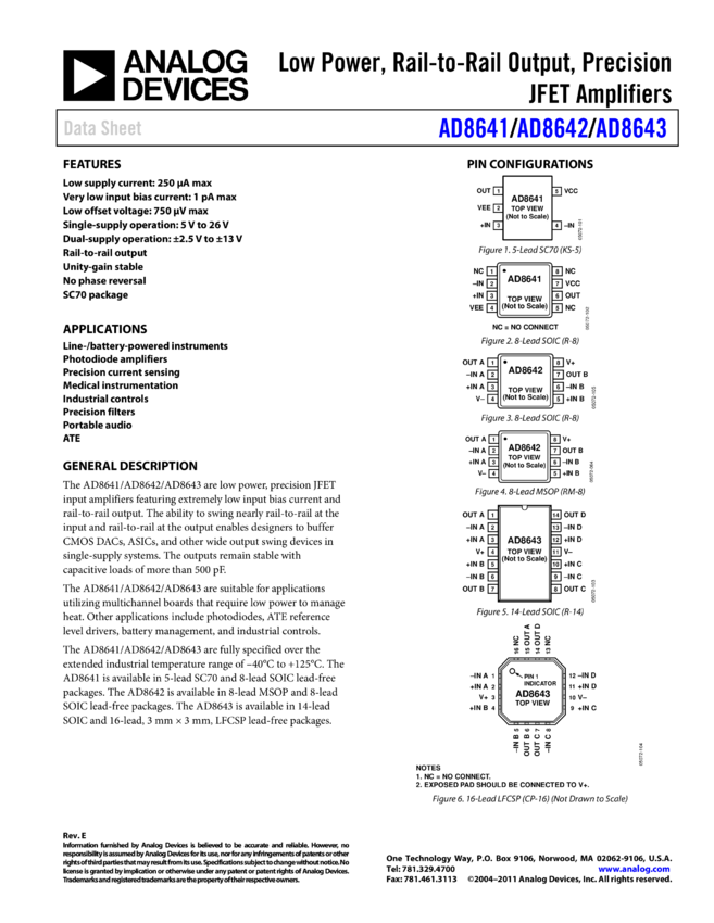 AD8641: Low Power, Rail-to-Rail Output Precision Single JFET Op Amp