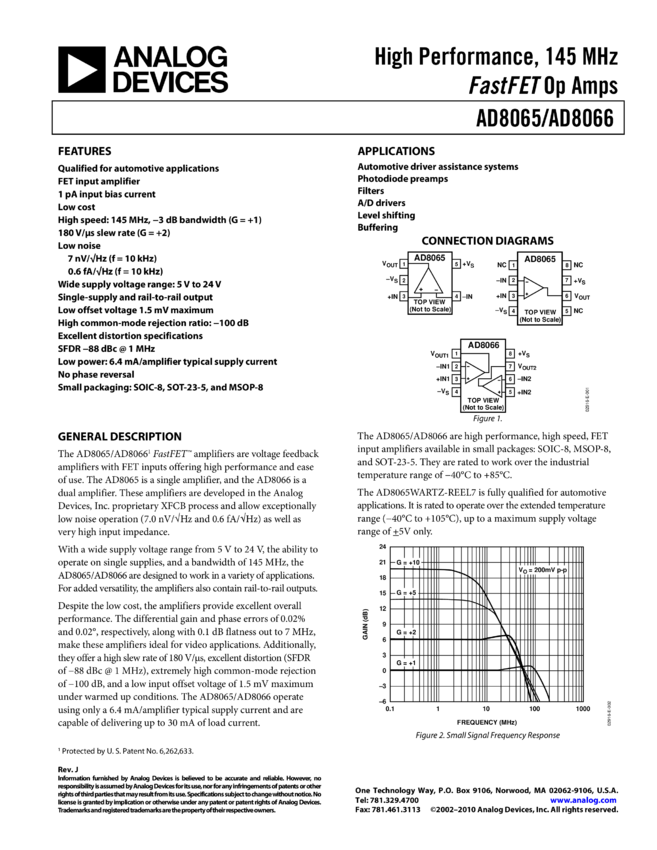 AD8065: High Performance, 145 MHz ™ Op Amp