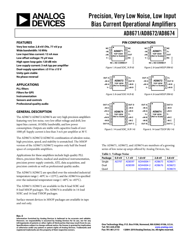 AD8671: Precision Low Noise, Low Input Bias Current, Single Op Amp
