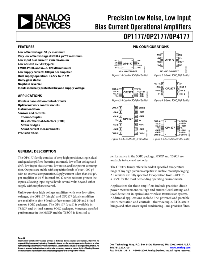 OP1177: Precision Low Noise, Low Input Bias Current Op Amp (Single)