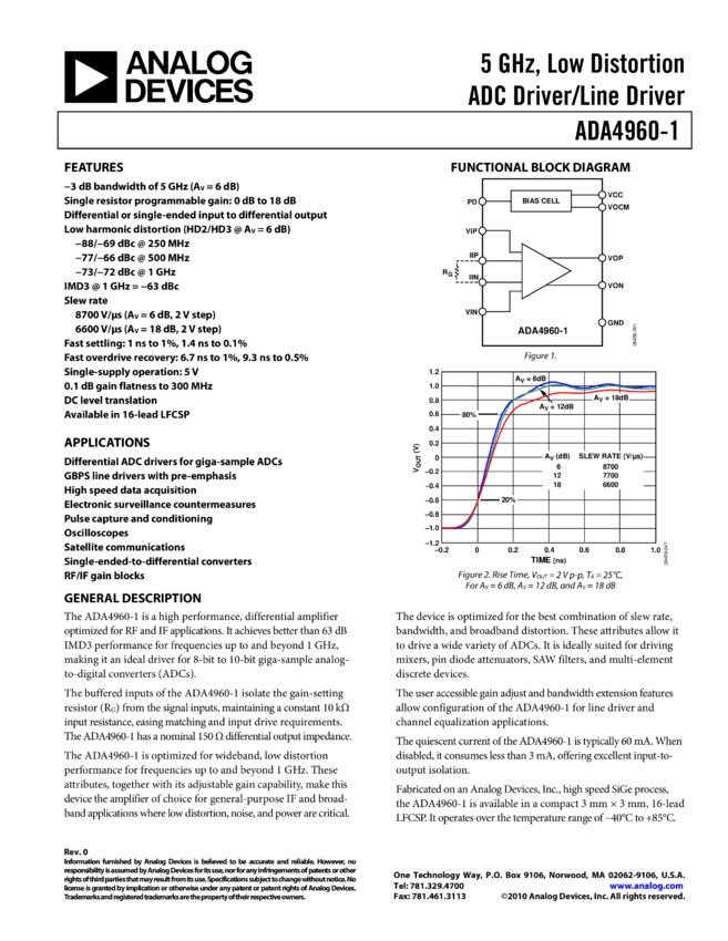 ADA4960-1: Low Distortion Ultrahigh Speed Differential ADC Driver