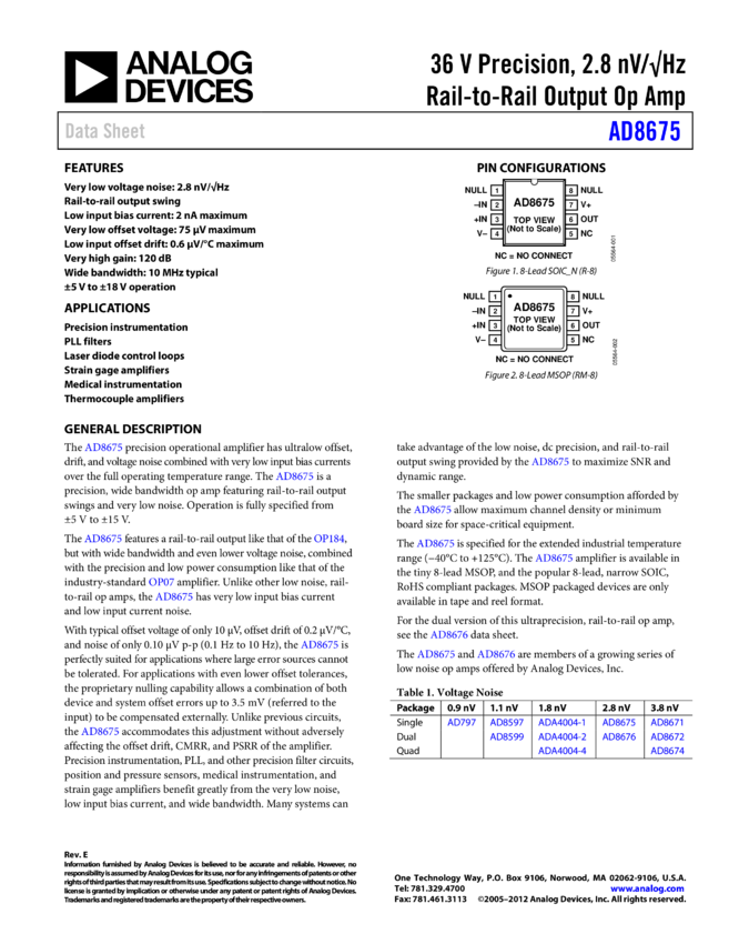 AD8675: 36 V Precision, 2.8 V/√Hz Rail-to-Rail Output Op Amp