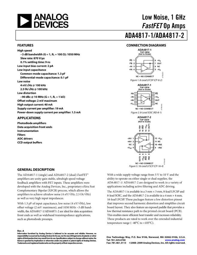 ADA4817-2: Low Noise, 1 GHz Op Amps