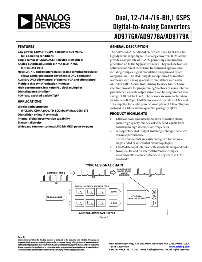 AD9779A: Dual 16-Bit, 1 GSPS, Digital-to-Analog Converter