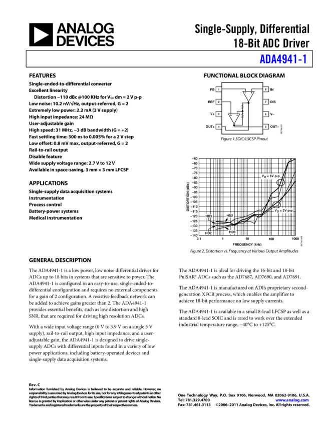 ADA4941-1: Single-Supply, Differential 18-Bit ADC Driver