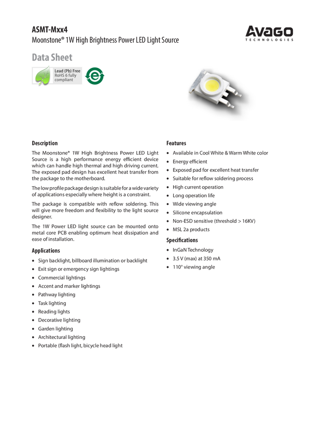 Dioda LED Dużej Mocy Avago Technologies ASMT-MW01-NFH00