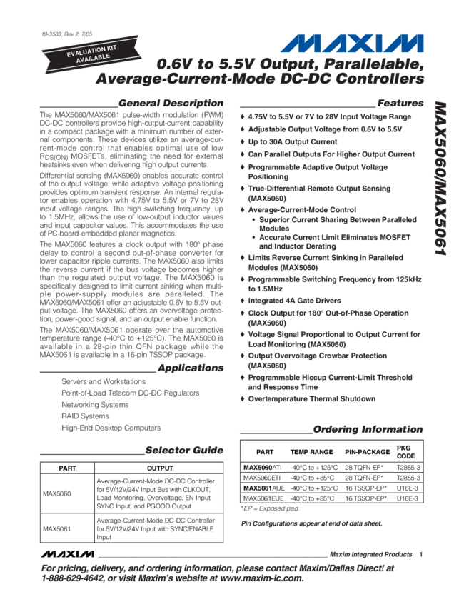 MAX5061 0.6-5.5V Output Parallelable Average-Current-Mode DC-DC Controller