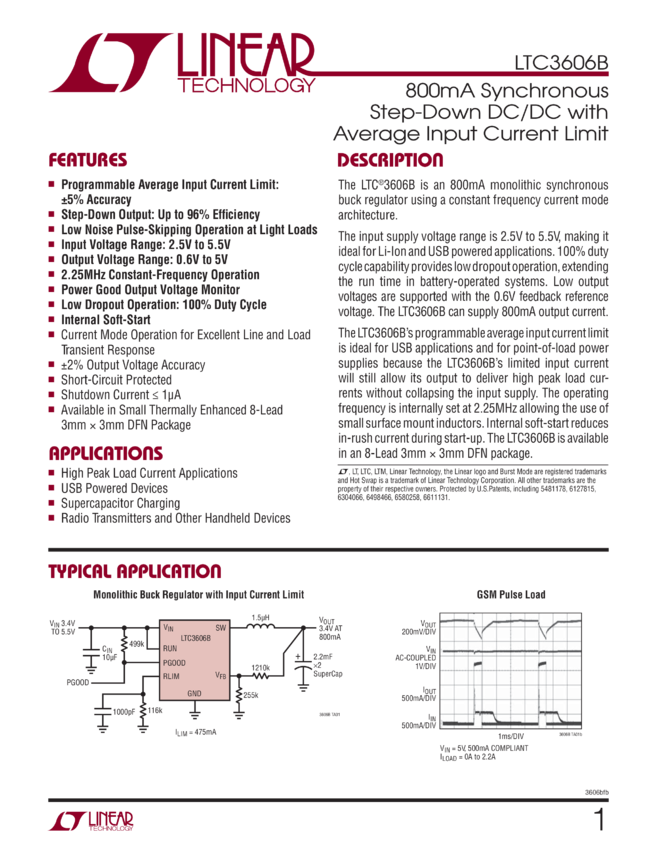 800mA Synchronous Step-Down DC/DC with Average Input Current Limit