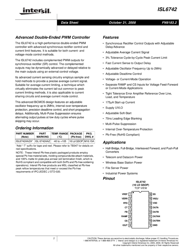 Advanced Double-Ended PWM Controller with Synchronous Rectifier Control and Average Current Limit