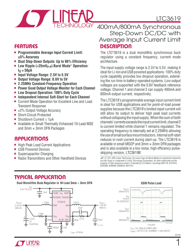 400mA/800mA Synchronous Step-Down DC/DC with Average Input Current Limit