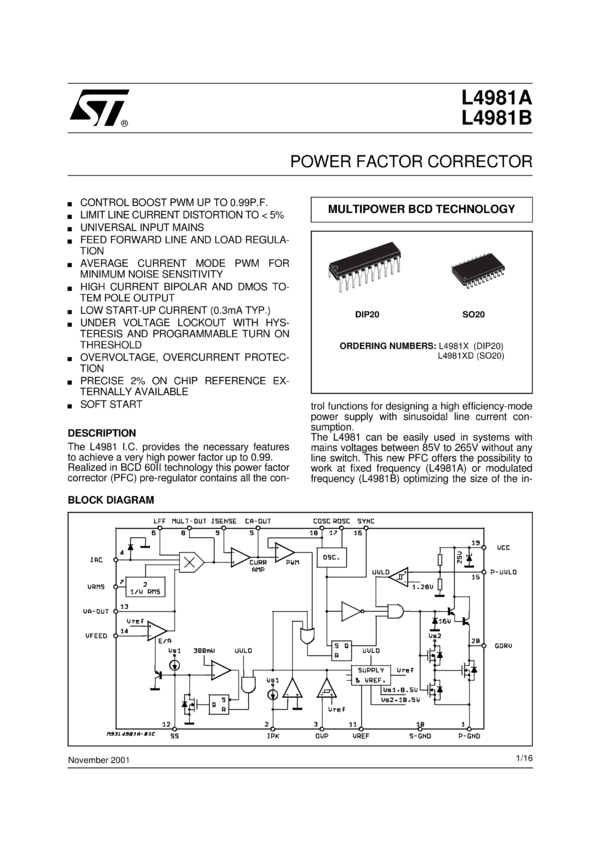 L4981A: Fixed Frequency Average Current Mode; L4981B: Line Modulated Frequency Average Current Mode