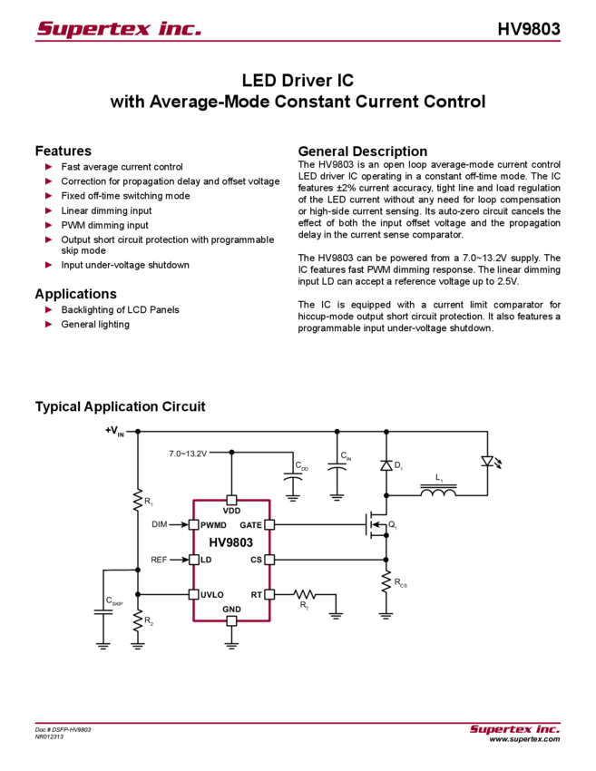 HV9803 Datasheet - LED Driver with Average-Mode Constant Current Control (06/22/2014)