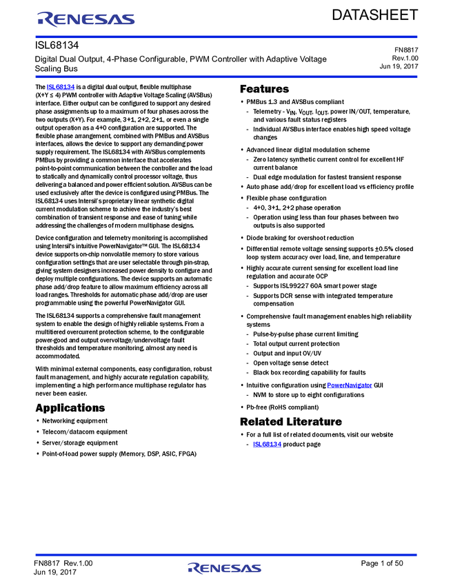 Digital Dual Output, 7-Phase Configurable PWM Controller with Adaptive Voltage Scaling (AVSBus) Bus