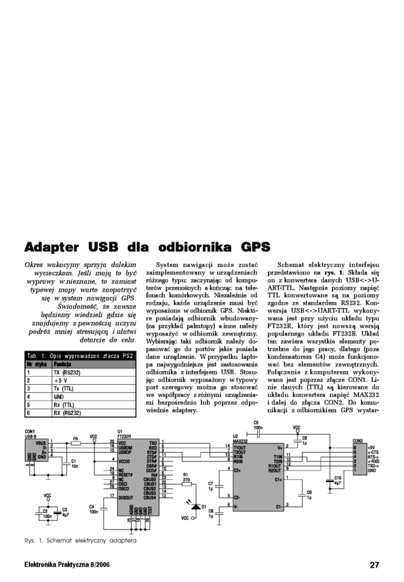AVT1434 A Adapter USB dla odbiornika GPS - płytka drukowana
