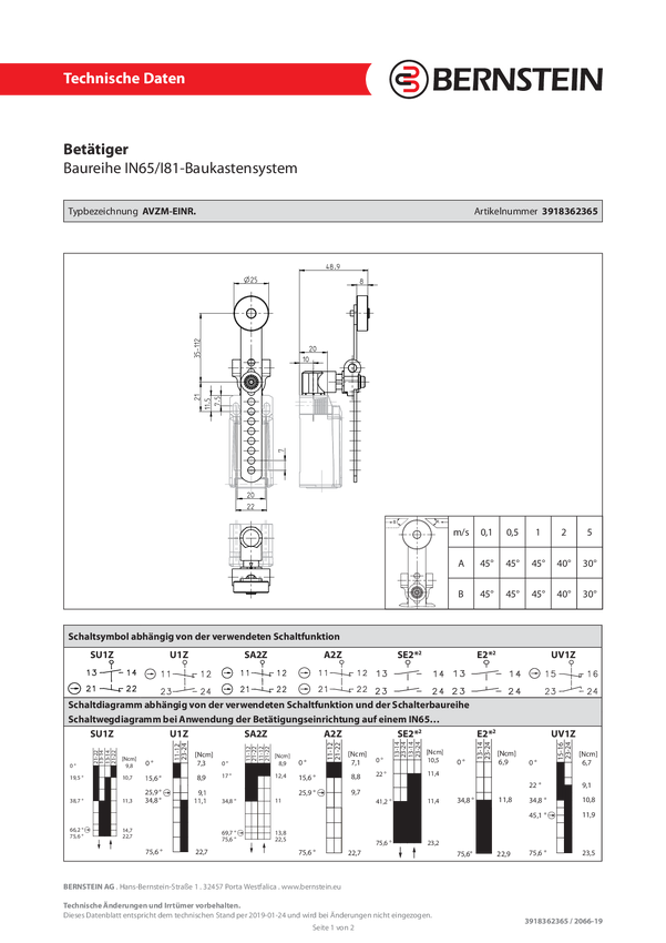 Bernstein 3918362365 AVZM-EINR. Aktuator IP66/IP67 1 szt.