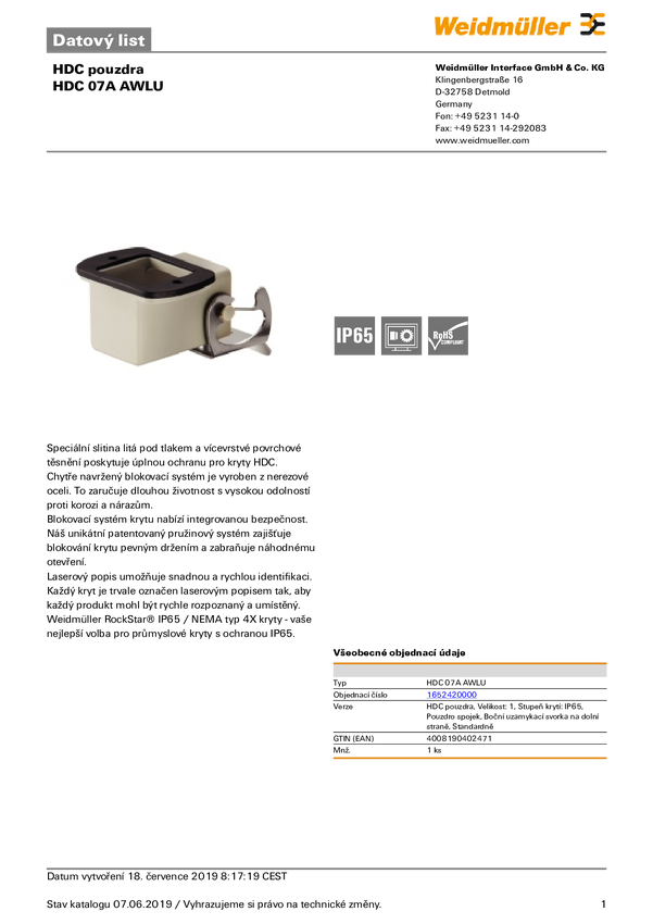 Weidmüller HDC 07A AWLU 1652420000 Obudowa montażowa 1 szt.
