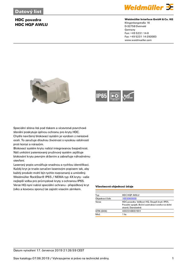 Weidmüller HDC HQP AWLU 1003060000 Obudowa montażowa 1 szt.