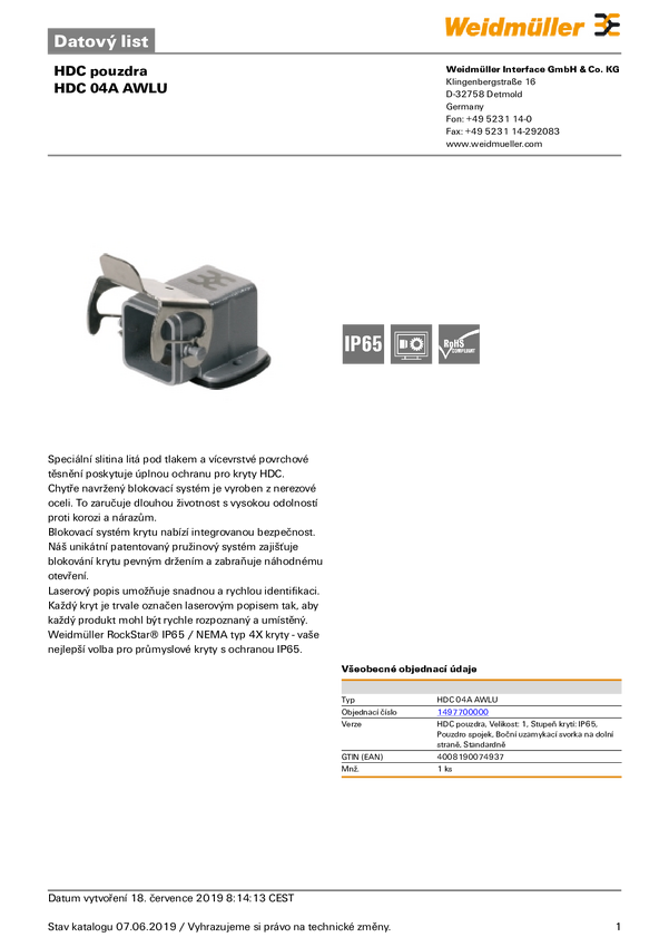 Weidmüller HDC 04A AWLU 1497700000 Obudowa montażowa 1 szt.