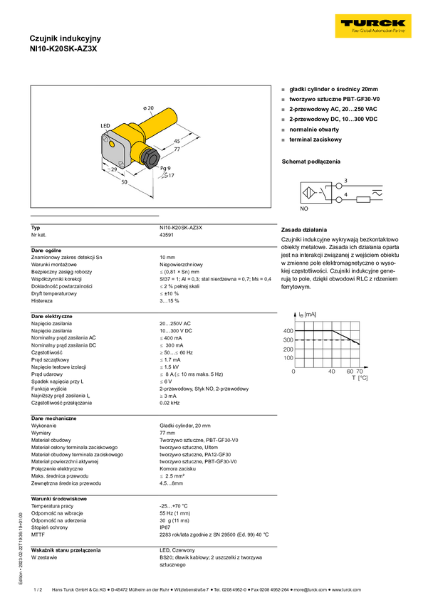 Turck Czujnik indukcyjny nie podtynkowy NI10-K20SK-AZ3X