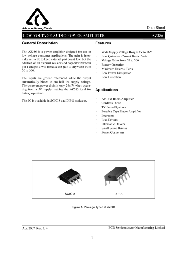 LOW VOLTAGE AUDIO POWER AMPLIFIER