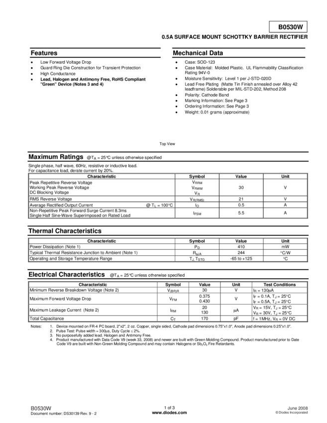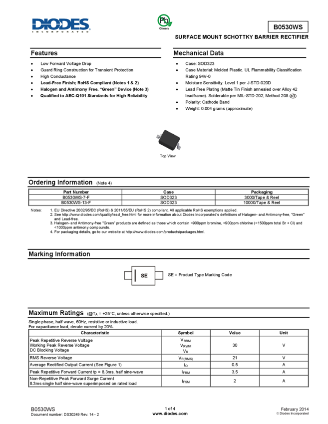 Dioda Schottky'ego Taiwan Semiconductor B0530WS RRG N/A N/A N/A U(RRM) 30 V