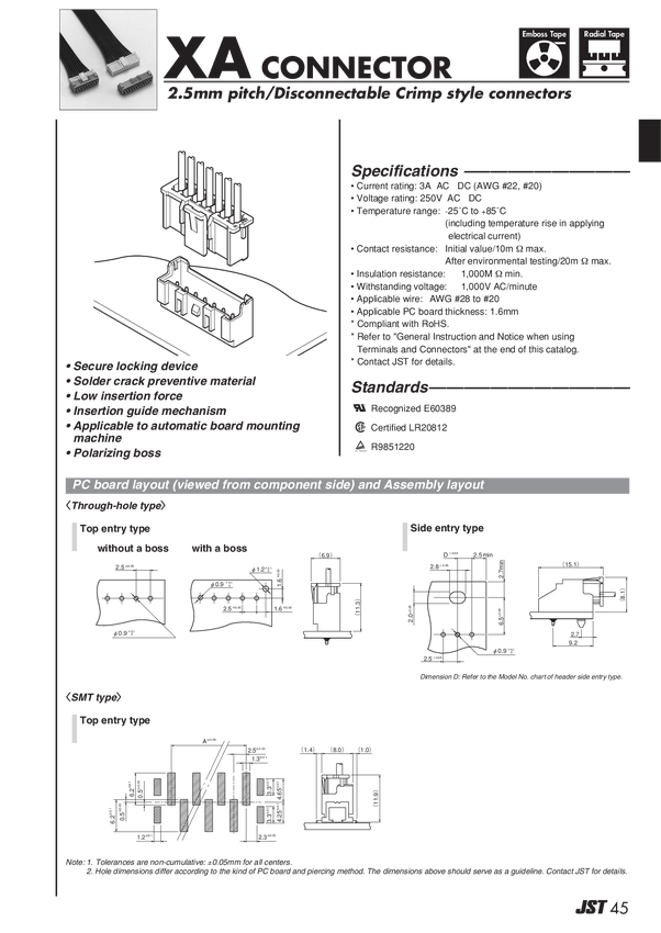 Listwa kołkowa, męska, standardowa JST B05B-XASK-1 (LF)(SN), Ilość pinów 5, Wymiary siatki: 2.50 mm, 1 szt.