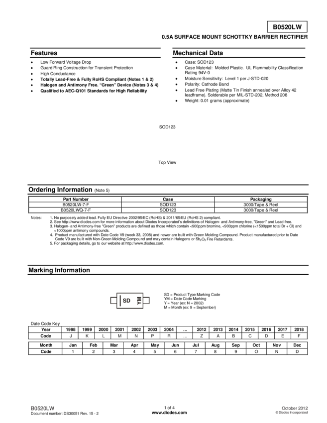 Dioda Schottky'ego Taiwan Semiconductor B0540W RHG N/A N/A N/A U(RRM) 40 V