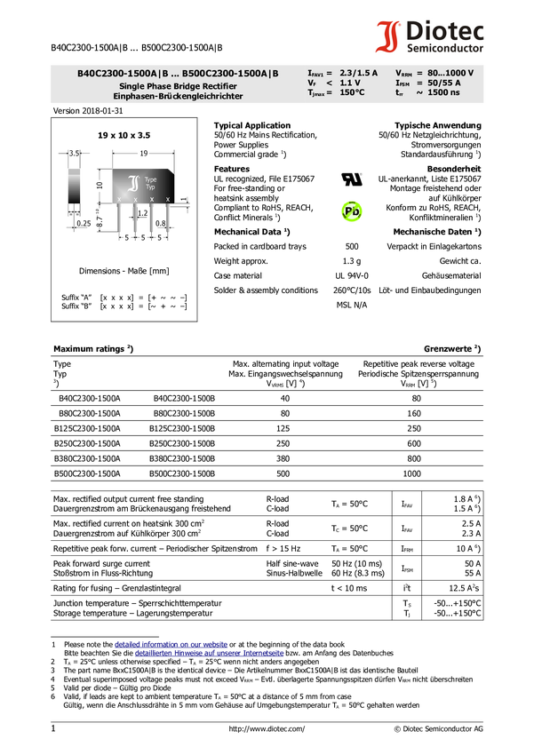 Diotec B125C1500B Prostownik mostkowy GBS_SIL-1.5-2.3 250 V