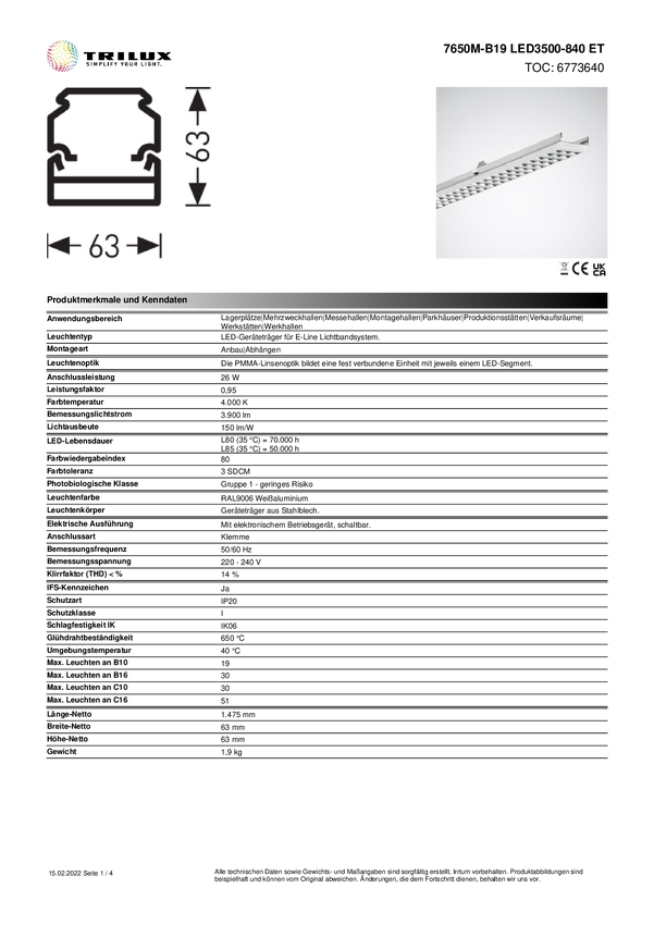 Ciąg świetlny Trilux 7650M-B19 #6773640 6773640, 1 szt.