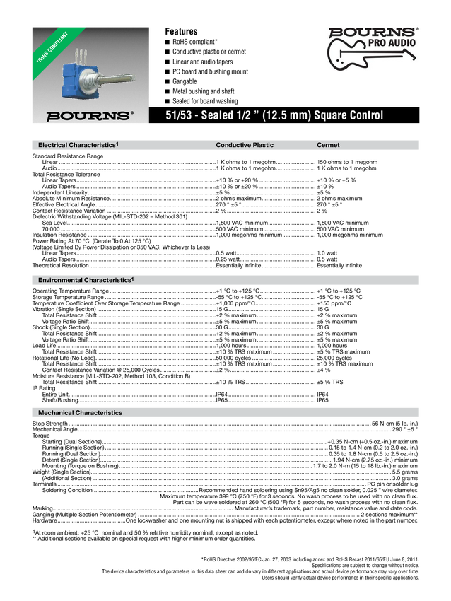Bourns 51RAD-R22-B20L Potencjometr z tworzywa sztucznego przewodzącego 0.5 W 100 kΩ 1 szt.