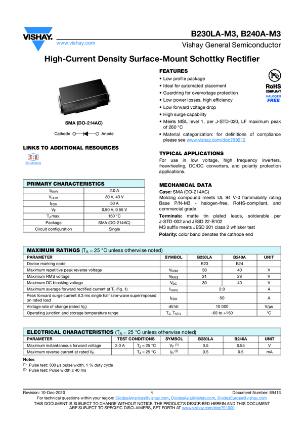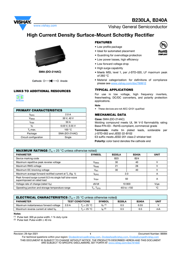 Diode Schottky 20V 2A 2-Pin SMA