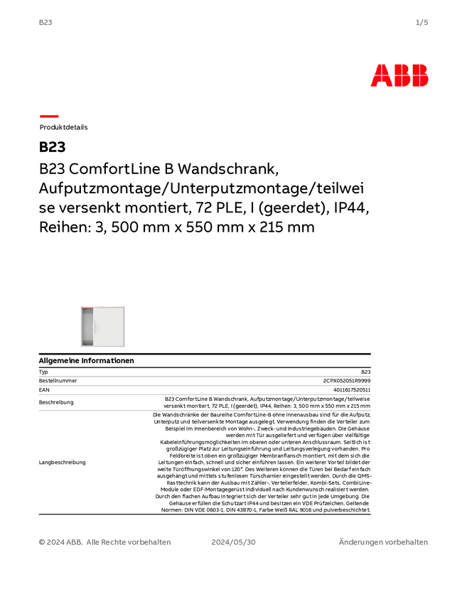 Striebel & John 2CPX052051R9999 B23 Pusta szafka nadtynkowy Ilość rzędów = 3 Content 1 szt.