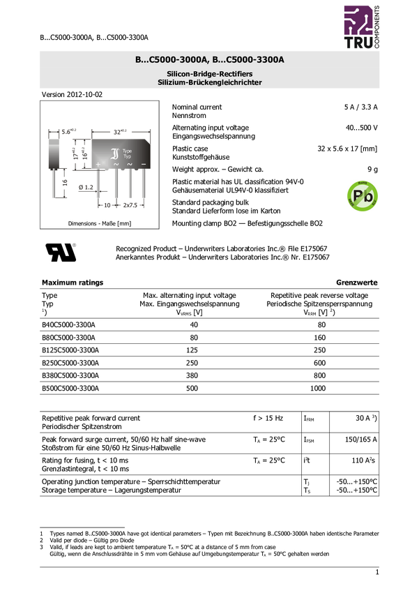 Prostownik mostkowy TRU COMPONENTS TC-B250C5000A, 600 V, 5 A