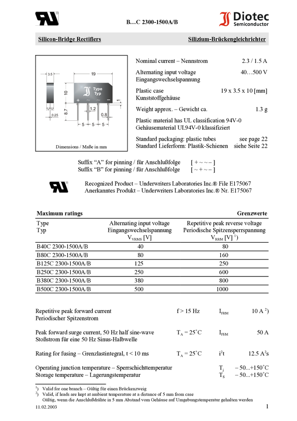 Diotec B250C1500A Prostownik mostkowy GBS_SIL-1.5-2.3 600 V