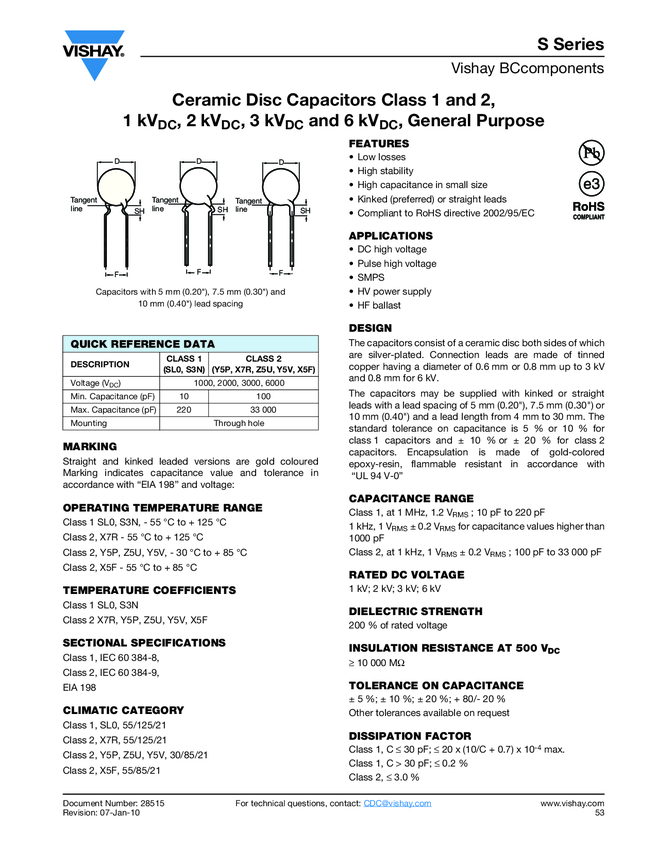 Cap Ceramic 10pF 1000V SL0 10% (6.5 X 4mm) Radial 5mm 125°C Ammo Pack