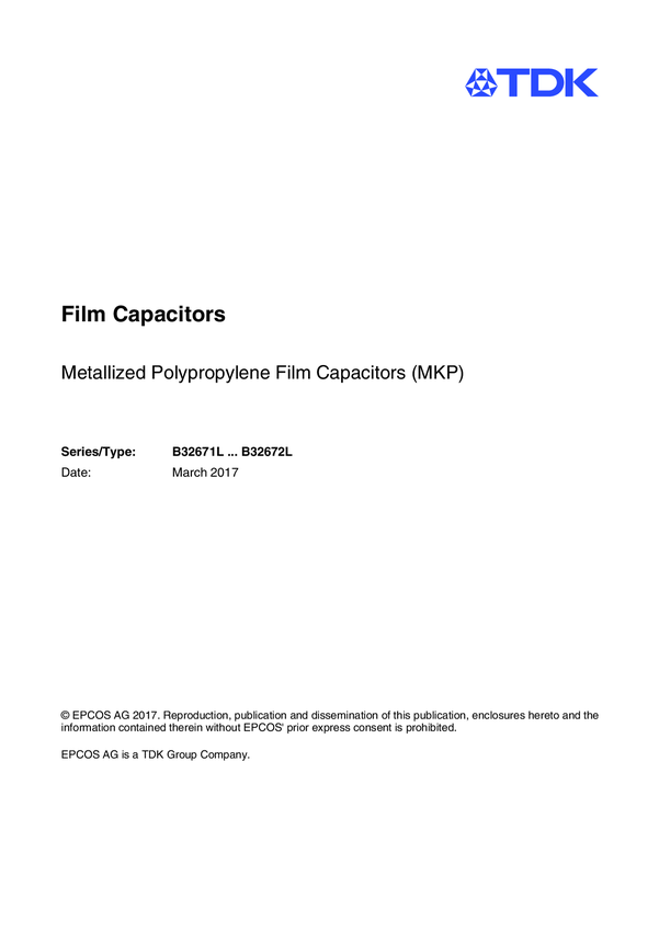 Cap Film 0.0033uF 630V PP 5% (10 X 4 X 8.5mm) Radial 7.5mm 105°C T/R