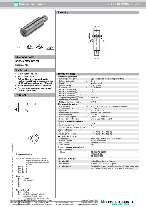 Pepperl+Fuchs Czujnik indukcyjny Interfejs AS NBB8-18GM60-B3B-V1