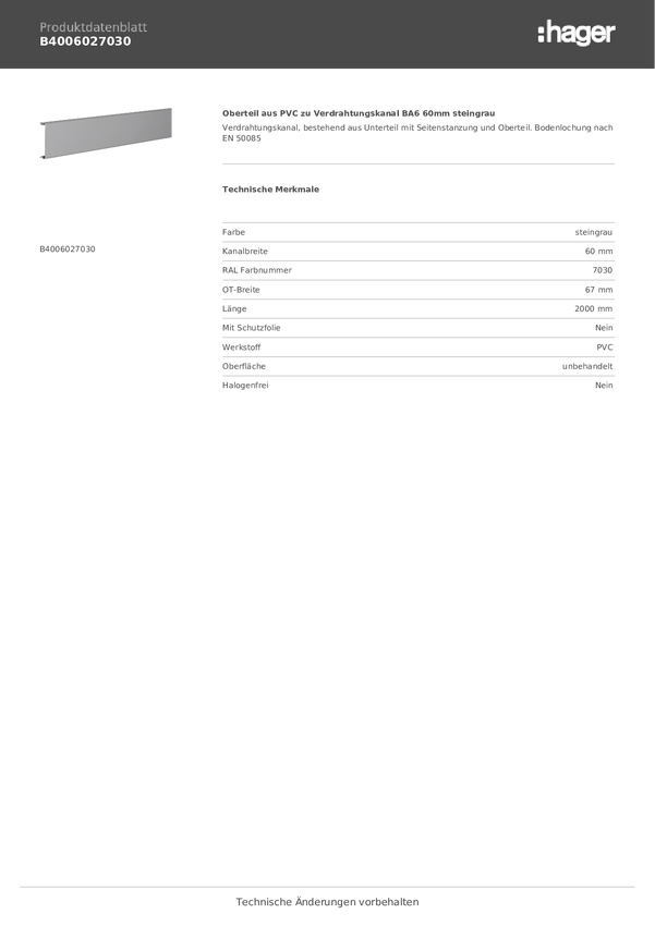 Górna Hager B4004027030 B4004027030, 1 szt.