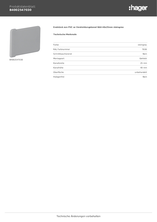 Element końcowy Hager B4006047030 B4006047030, 1 szt.