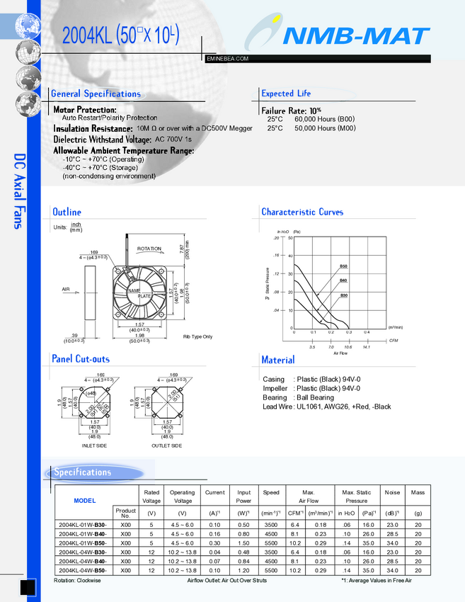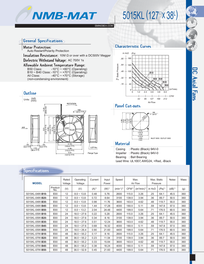 wentylator 50x50x10; 5V, łożyskowany są wersje B00 - Rotor Protection; B50- Tachometr