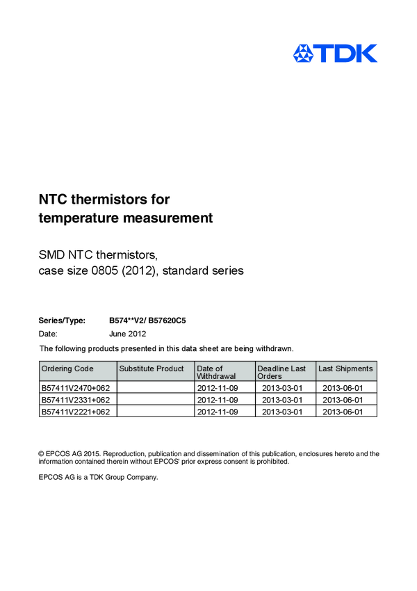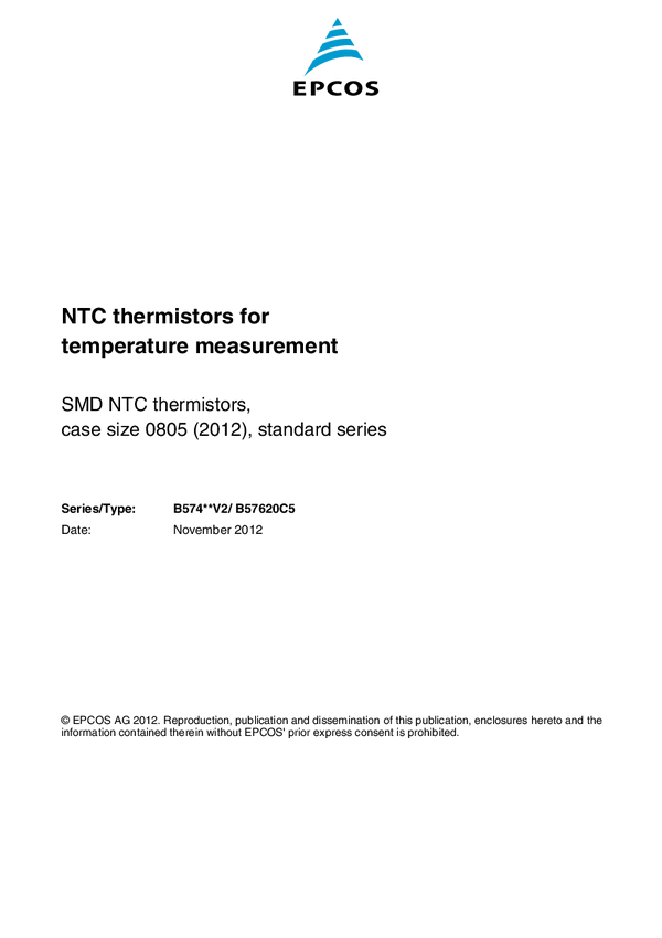 TDK B57421V2102J062 B57421V2102J062 NTC Czujnik temperatury -55 do +125 °C 1 kΩ 3940 K 805 SMD taśma cięta