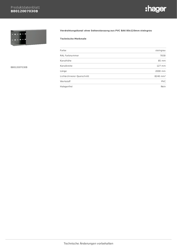 Kanał na wiązki Hager B8012007030B B8012007030B (D x S x W) 2000 x 127 x 85 mm 2 m