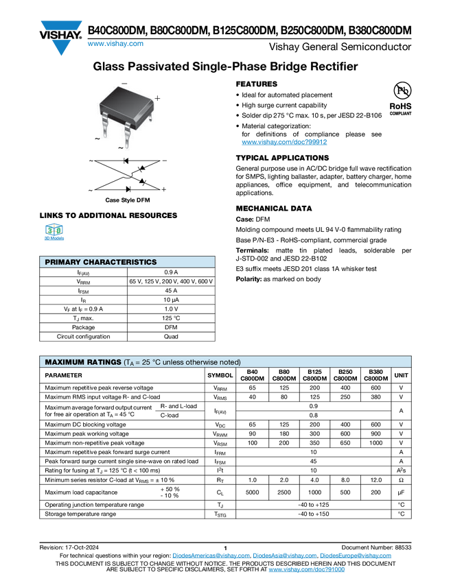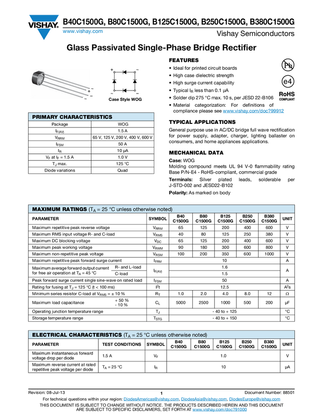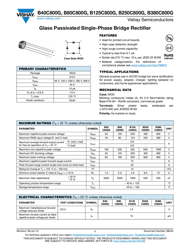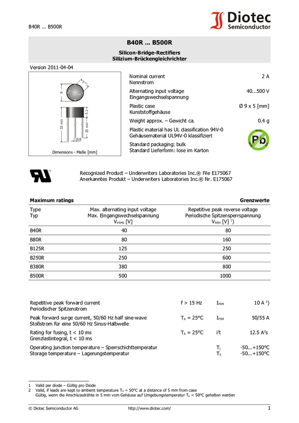 Prostownik mostkowy Diotec B80R, 160 V, 2 A