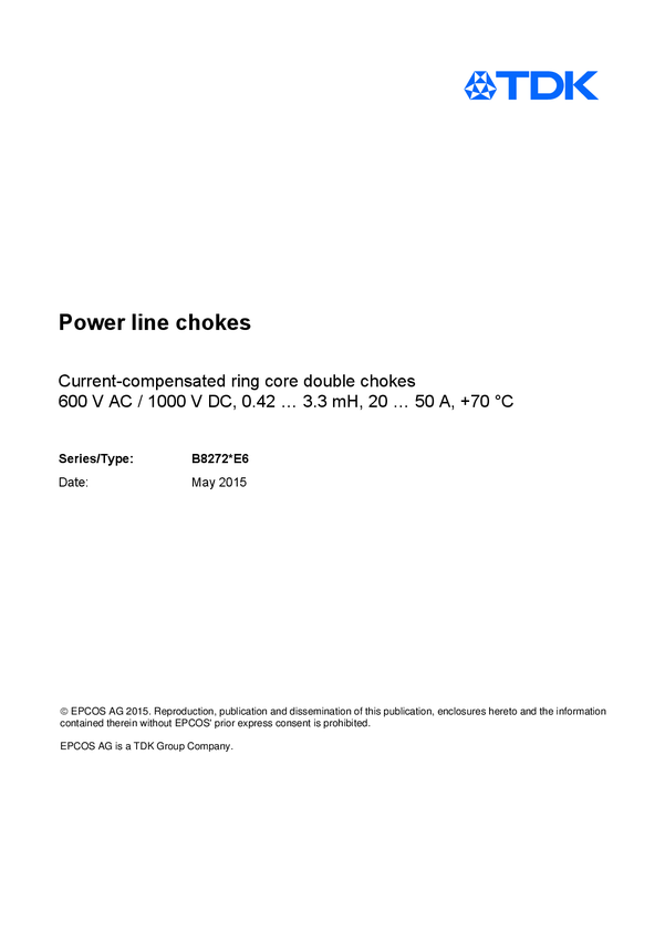 Ind Power Line Choke 1.6mH -30% to 50% 10KHz Ferrite 20A Pin Cardboard Box