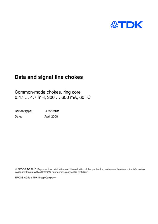 Ind Choke 1mH -30% to 50% 100KHz Ferrite 500mA Blister T/R