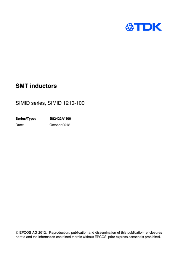 Cewka TDK B82422H1103K000 B82422H1103K000 10 µH 0.5 A 2000 szt.