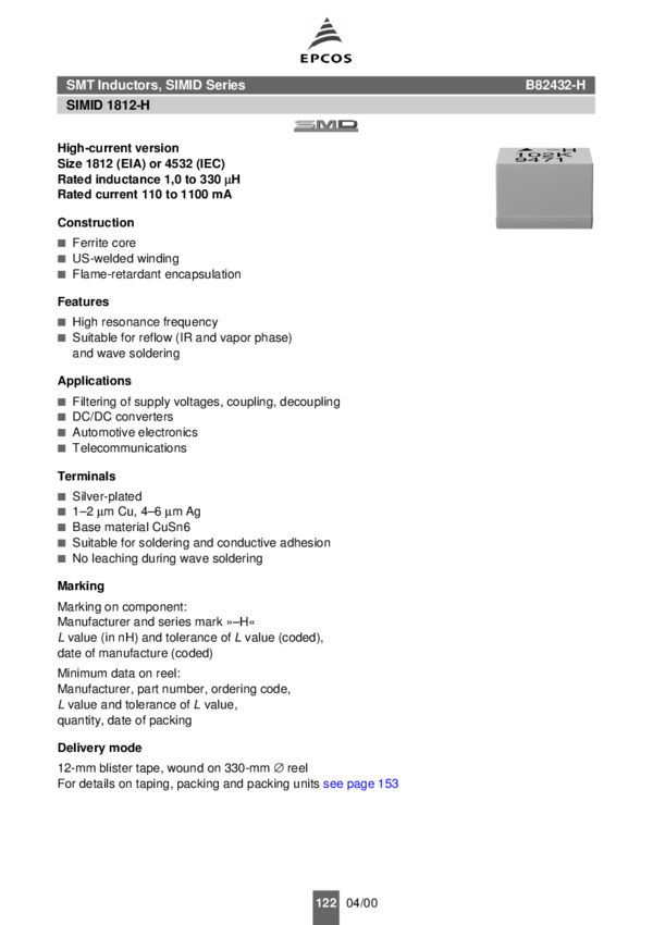 Ind 1mH 5% 100KHz 30Q-Factor Ferrite 55mA 1812 Blister T/R