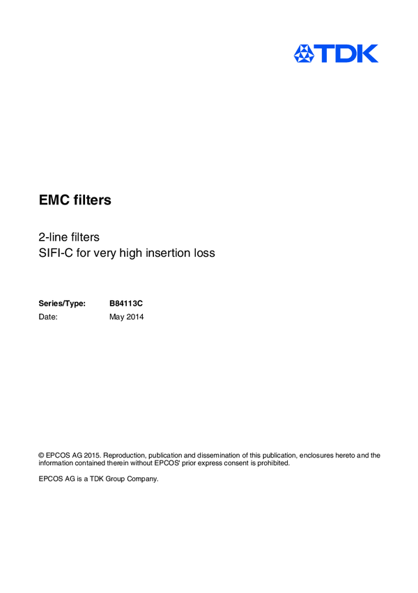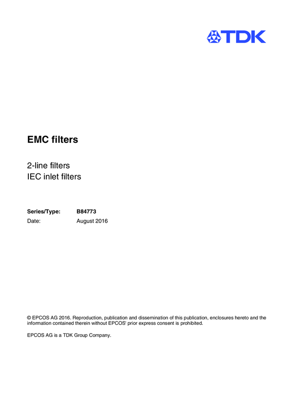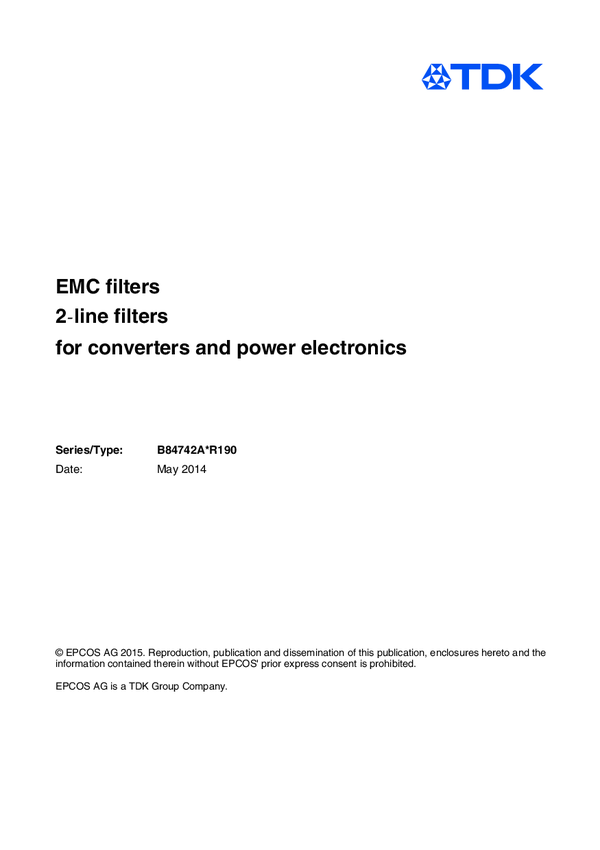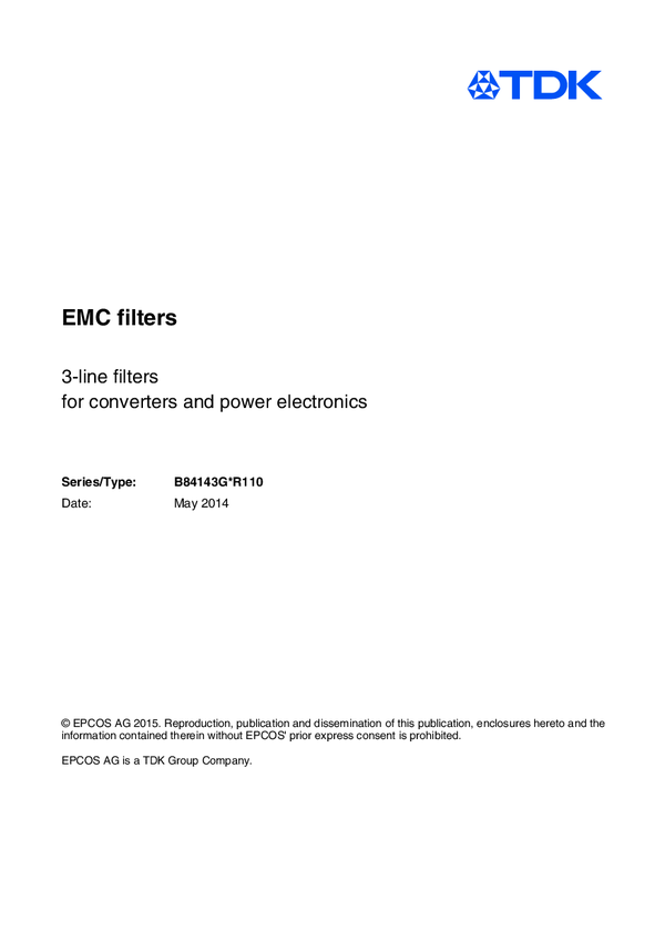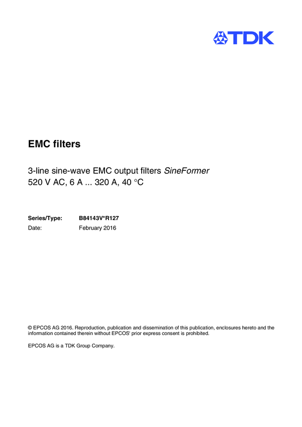 Power Line Filter 50Hz/60Hz 180A 760VAC Busbar Flange Mount