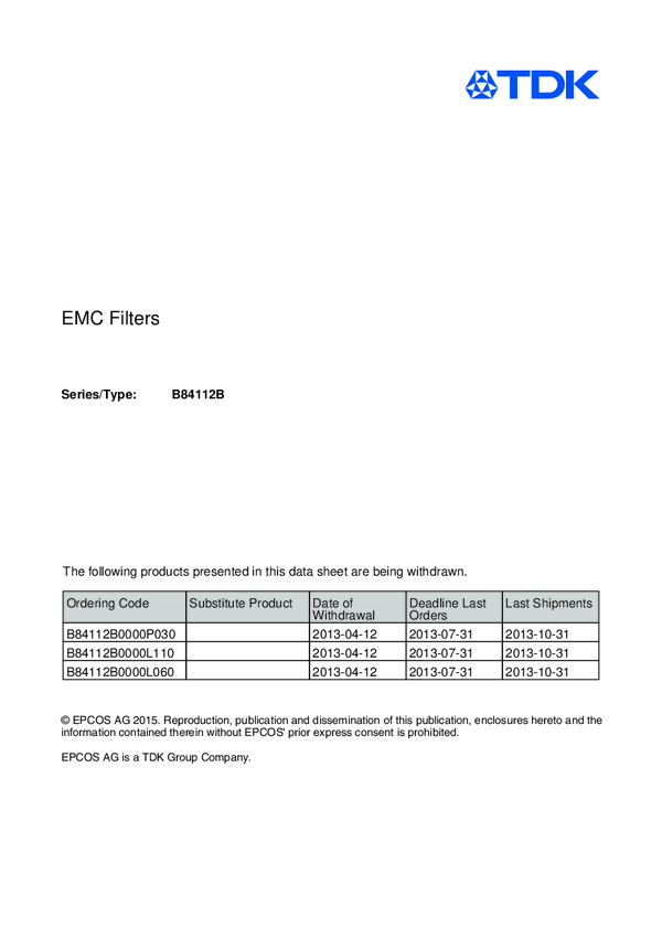 Filtr szumów TDK B84112BB30, 250 V/AC, 3 A, 10 mH