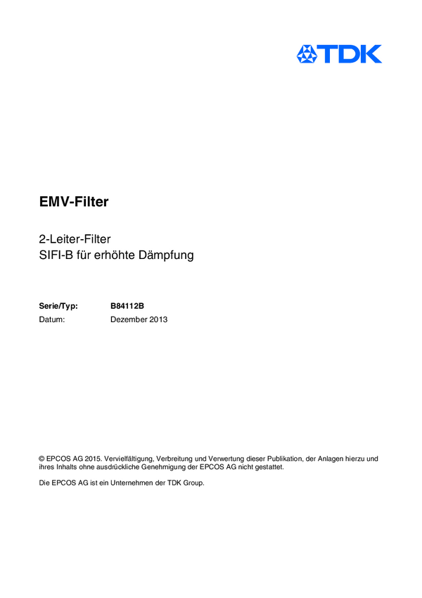 TDK B84112BB120 B84112BB120 Filtr szumów zmniejszona palność 250 V/AC 20 A 1.8 mH (D x S x W) 84 x 125 x 38.1 mm 1 szt.